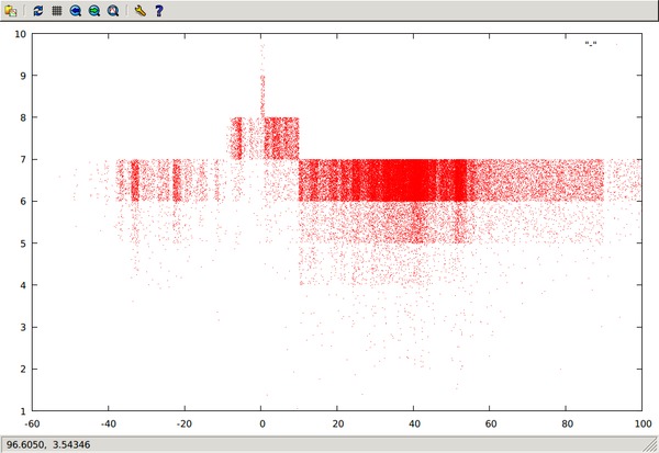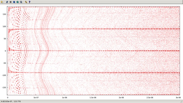 This one completely surprised me. I was looking for the exact spacing being applied to some data and started seeing all kinds of interesting stuff in the high-frequency range: spikes at 217 and 218 indicating single-precision truncation, powers of ten indicating digit truncation, and in another (not yet published) analysis, 1/60 and 1/3600 from truncated DMS encoding.