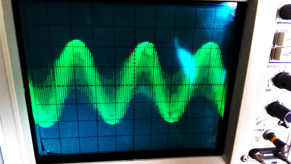 This was one of my first Arduino projects. It used an R2R DAC and split each of three port registers across both channels so there would be no timing difference. That's where its virtues ended though; because you can only write to one port register per cycle, the signal contained 125ns distortions and it could only emit about 1MS/s. It also had clipping issues due to the op-amp voltage margins. Postmortem pending...