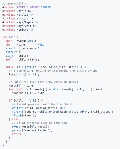 A quick tutorial that covers the basics of writing a UNIX shell, along